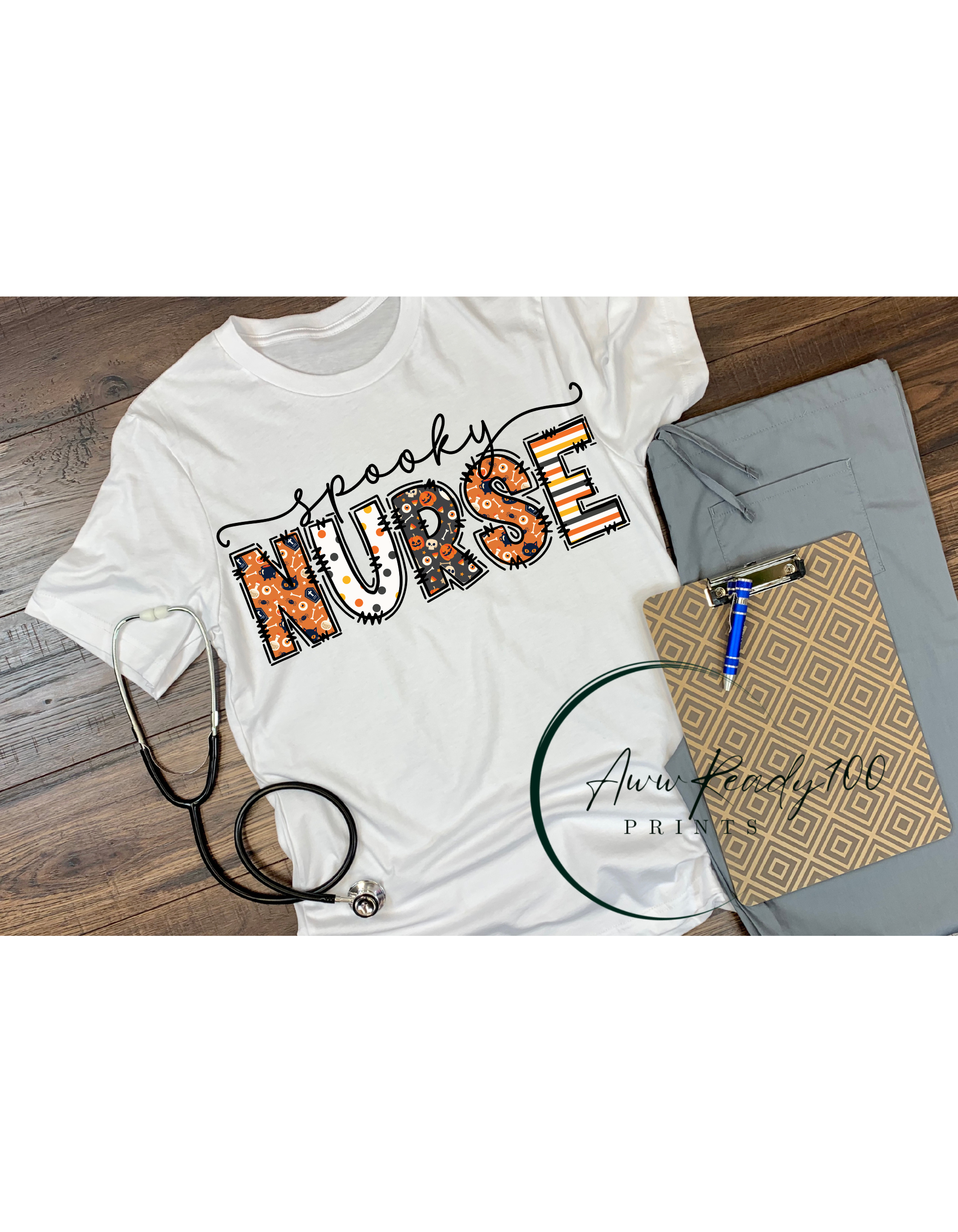 Elevate your Halloween spirit with our "Spooky Nurse" DTF Transfer! This unique and haunting design is perfect for nurses who want to add a touch of spookiness to their scrubs or attire during the spooky season..